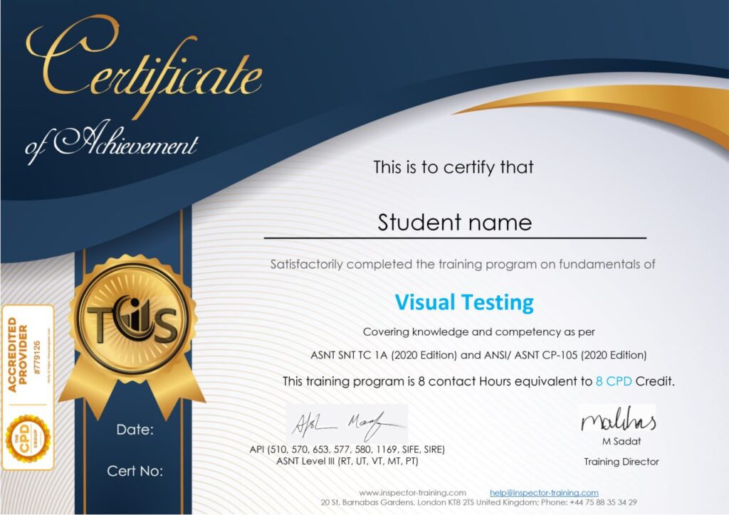 The current Visual Test (VT) video course is ideal for professionals seeking CPD credit hours for recertification with API ICP, CWI, CSWIP, or other bodies, or simply wish to gain general Knowledge.